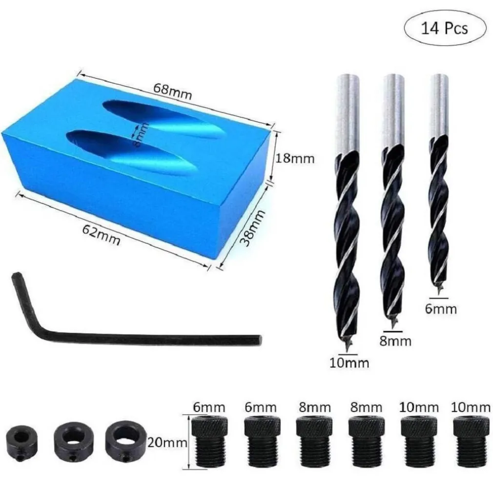 Dima per Fori a Tasca con Punte di Trapano 15° Falegname Posizionatore 14 pz