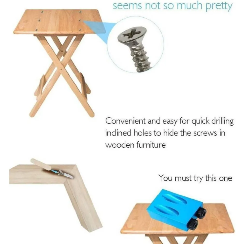 - Localizzatore di fori obliqui a 15 gradi: ti aiuta a praticare facilmente un foro obliquo.