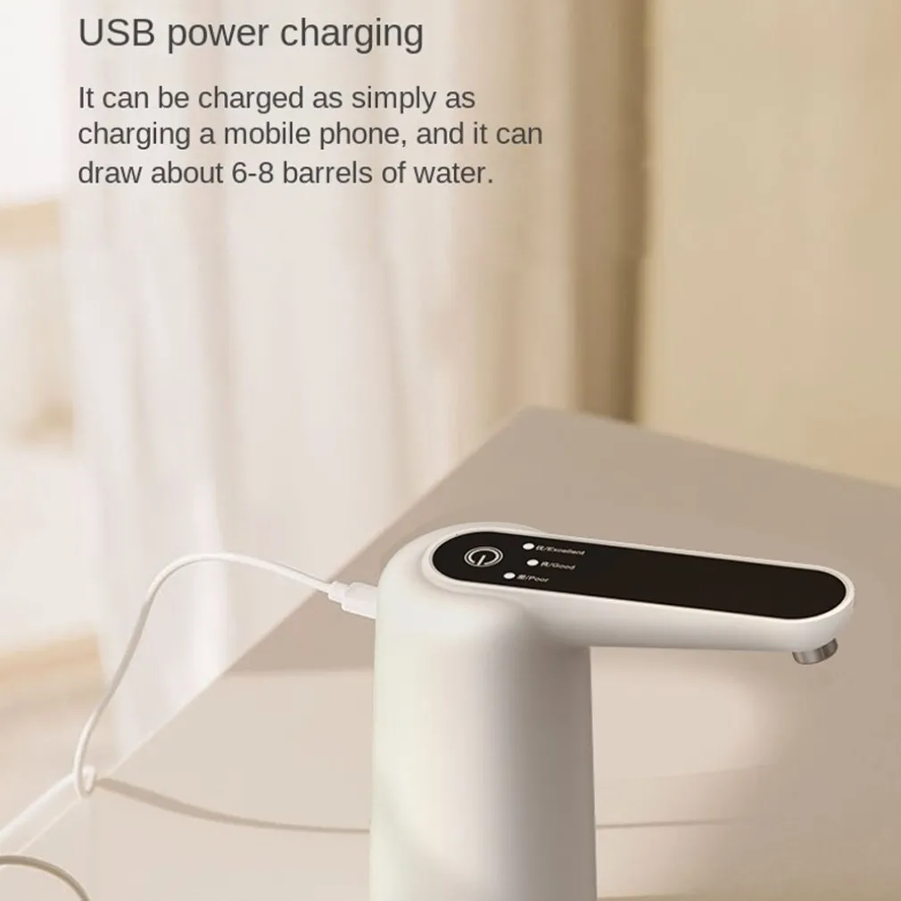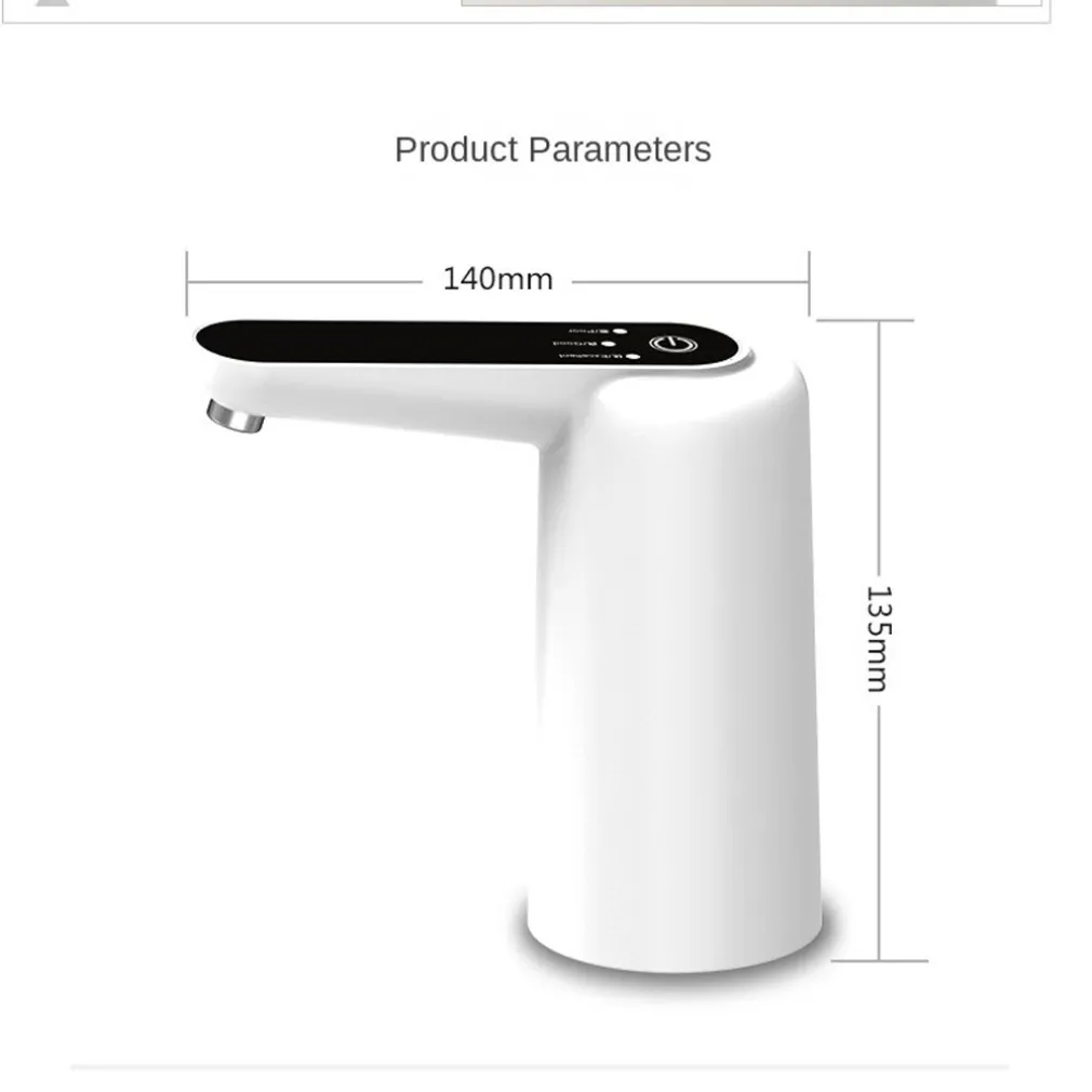Collegare il tubo in silicone e inserire il tubo in silicone sulla bottiglia. Quindi fissare la pompa dell’acqua Premere il pulsante per estrarre l’acqua Premere di nuovo il pulsante per fermare il pompaggio Carica con il cavo Micro-USB quando fuori dalla batteria