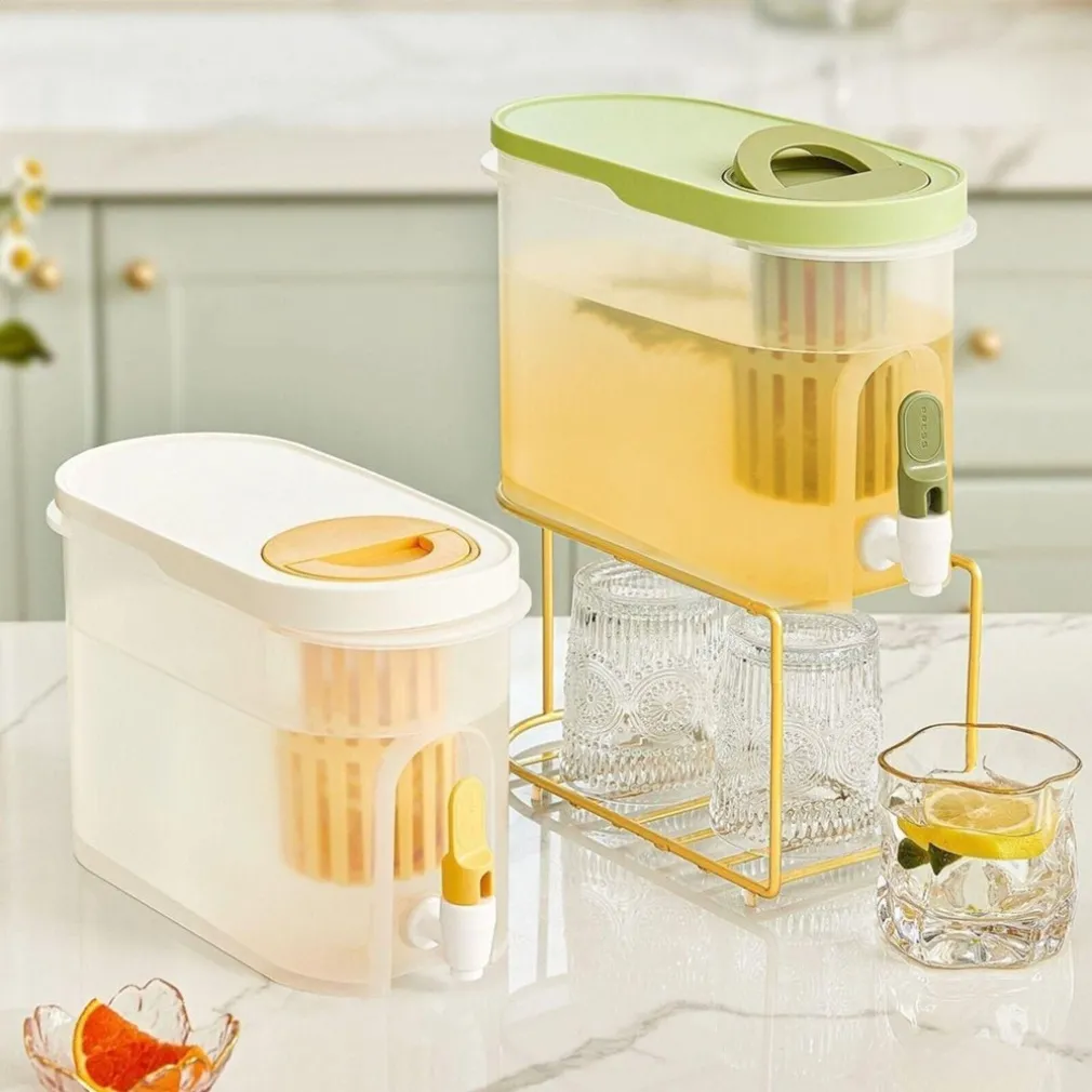 Risparmio spazio: Questo dispenser è progettato specificamente per adattarsi ai frigoriferi, occupando uno spazio minimo. La brocca per succhi è compatta e comoda da posizionare in qualsiasi angolo del frigorifero.
