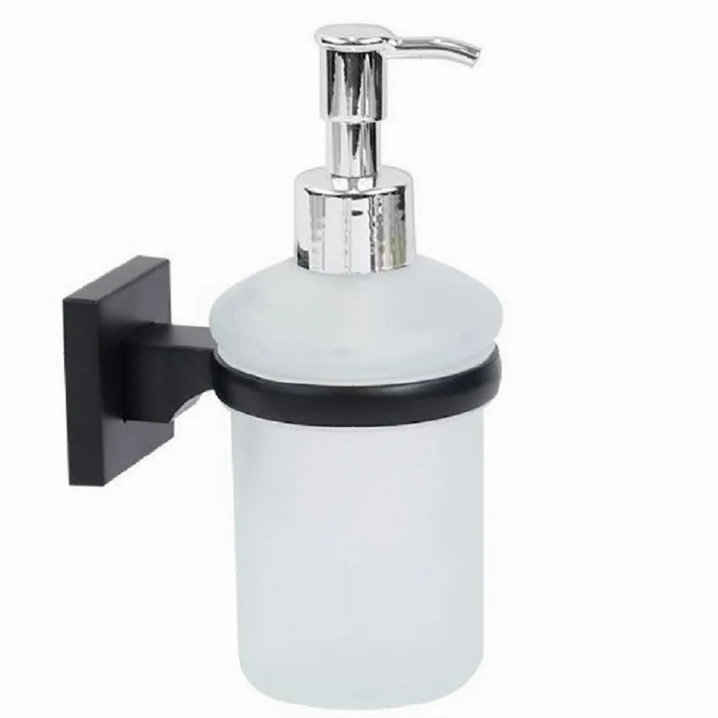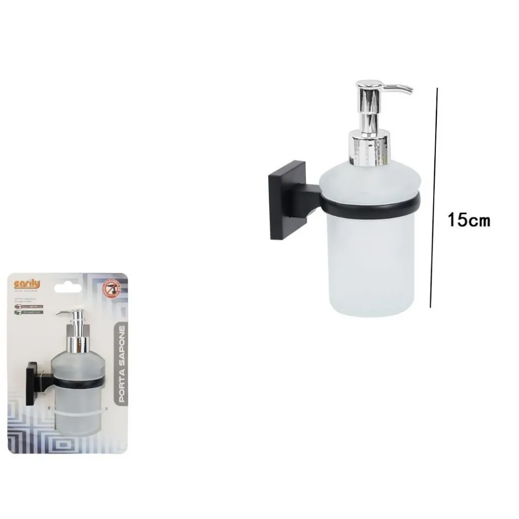 DISPENSER DOSATORE EROGATORE SAPONE DA MURO PARETE NERO IN ACCIAIO VETRO BAGNO