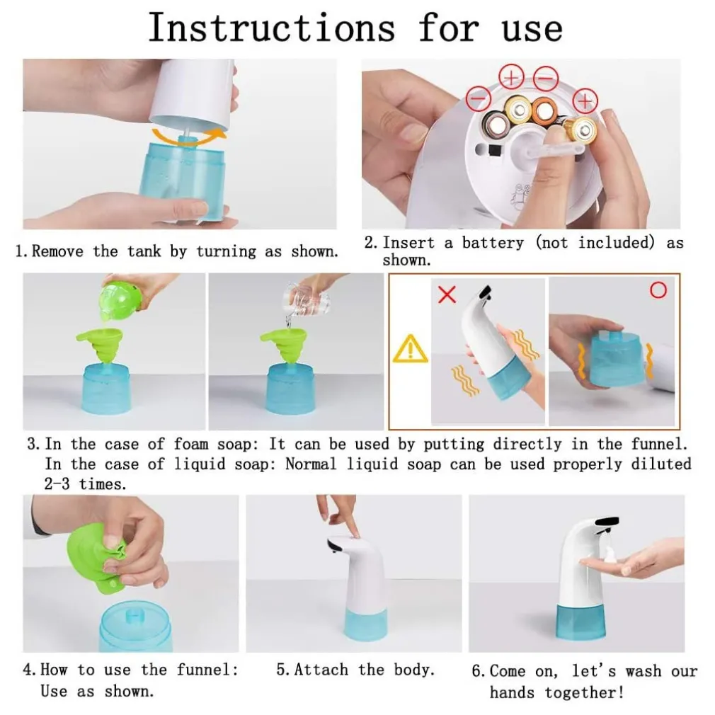 - Ampia Gamma di Applicazioni: È compatibile con vari liquidi come disinfettante per le mani in schiuma e sapone per le mani, ed è adatto anche per detersivo per piatti, gel doccia e disinfettante. (Si consiglia l’uso di saponi schiumogeni. Per diluire un normale sapone liquido, si consiglia un rapporto acqua / sapone 4: 1). Una scelta saggia per famiglie, uffici, scuole, ristoranti.