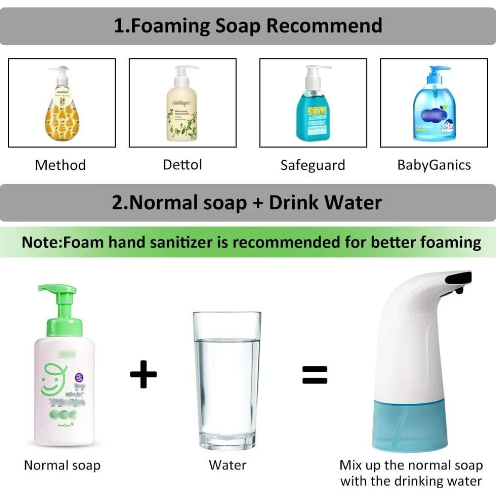 - Touchless Distributore di Sapone: Con sensore di movimento a infrarossi sensibile incorporato, Mettere le mani sotto l’ ugello, erogare rapidamente il sapone. Non c’è bisogno di toccare, evitare infezioni secondarie incrociate, per rendere la tua famiglia più sana.