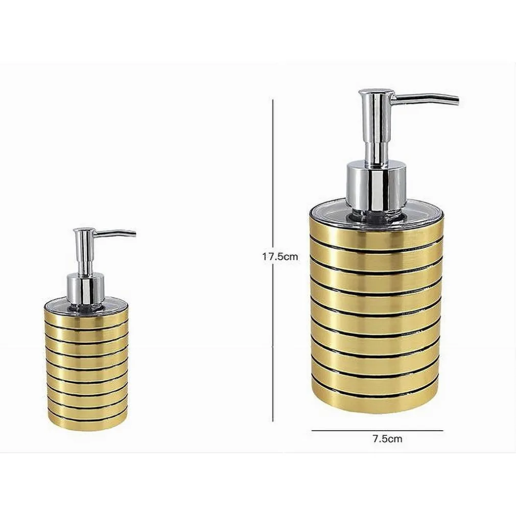 Il nostro dispenser per sapone liquido è unico per il suo design elegante e moderno con un colore oro a righe nere, perfetto per qualsiasi tipo di arredo bagno.