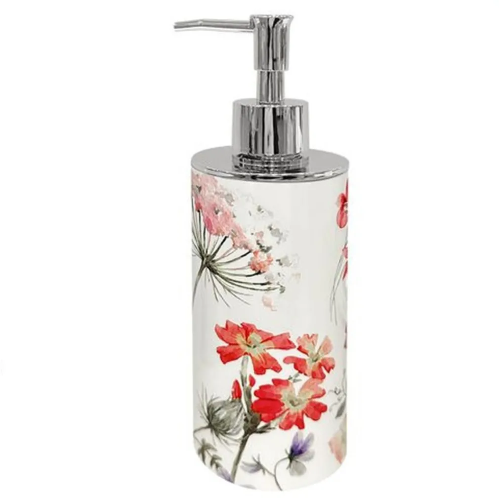 - Dispenser Porta Sapone Liquido Bianco con Fiori (Codice: 69922)