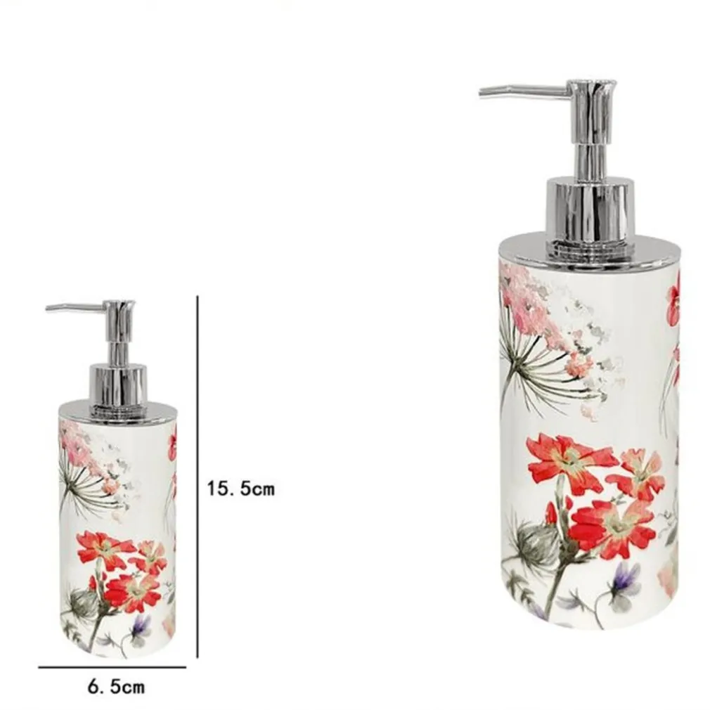 - Design Elegante: Il colore bianco con fiori conferisce un tocco di eleganza e raffinatezza, rendendo questo dispenser non solo funzionale ma anche un elemento decorativo per il tuo bagno.