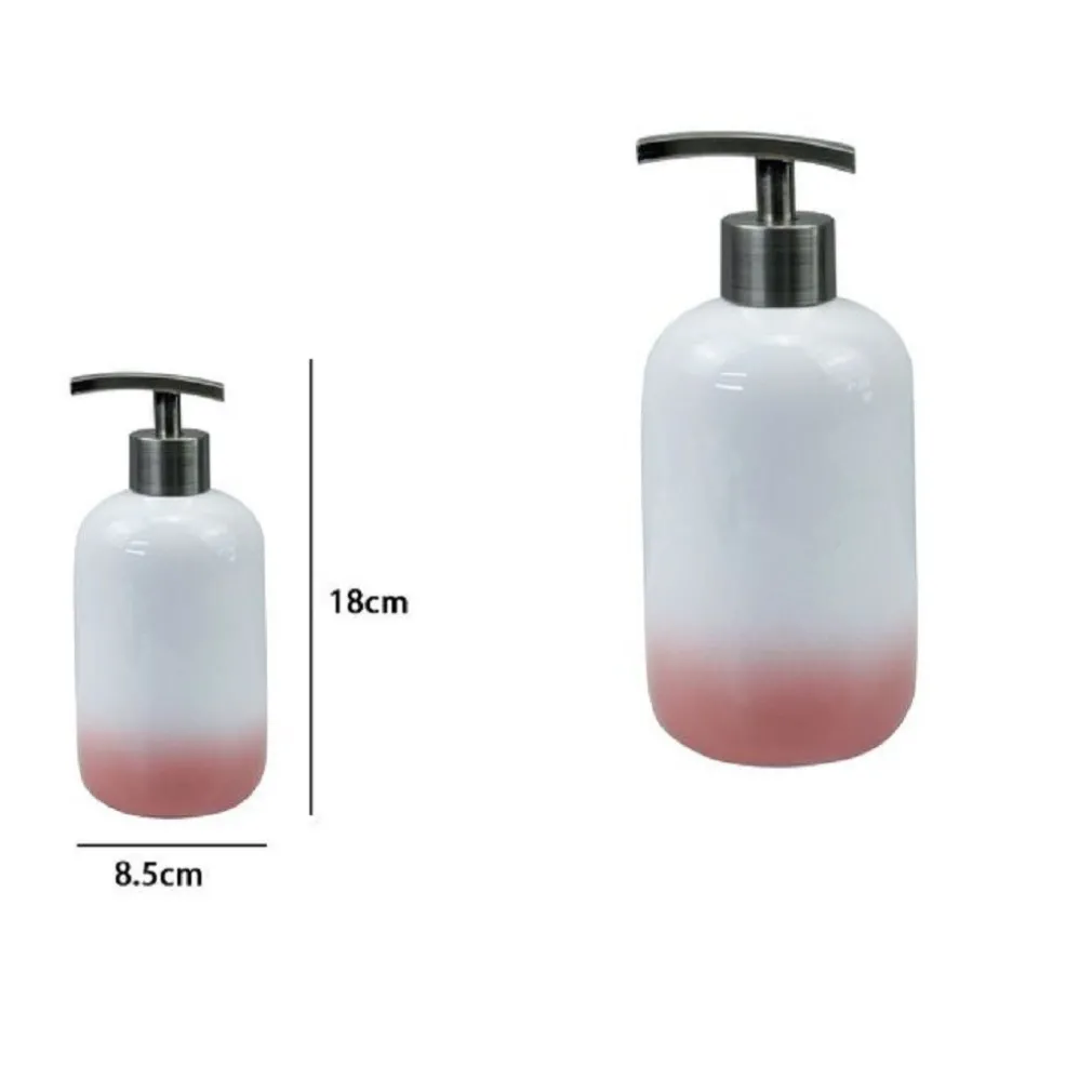 Colore Elegante: Il dispenser è realizzato in un bianco raffinato con una base sfumata rosa, creando un contrasto accattivante che attira lo sguardo e si sposa armoniosamente con la gamma di colori del tuo bagno.