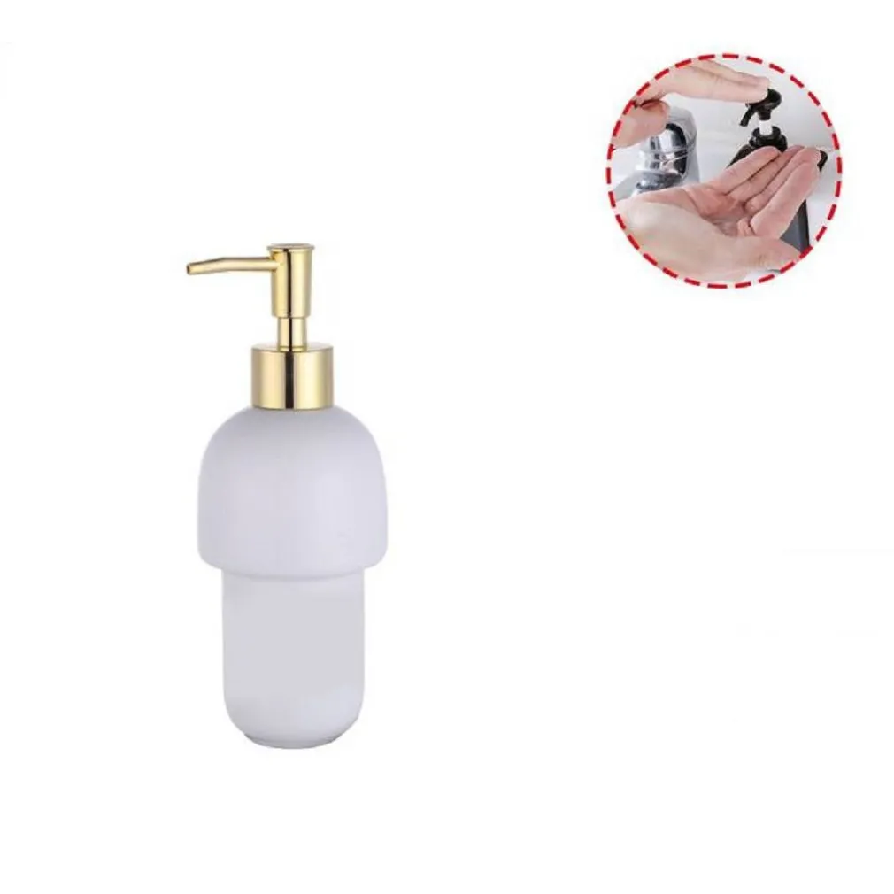 Questo dispenser per sapone liquido è realizzato con i più alti standard produttivi. Può essere utilizzato a sé o come ricambio per attacchi a muro standard. Il corpo è bianco, tappo dorato svitabile e ricaricabile con trigger a pompa.