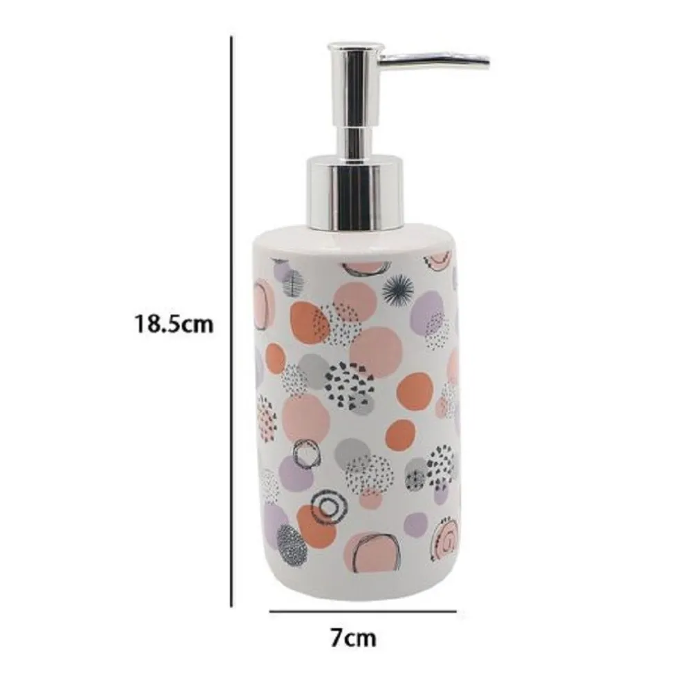 Design Esclusivo: Il nostro dispenser porta sapone liquido presenta un design unico caratterizzato da sfere astratte multicolore, che aggiungono un tocco di creatività e vivacità al tuo arredo bagno.