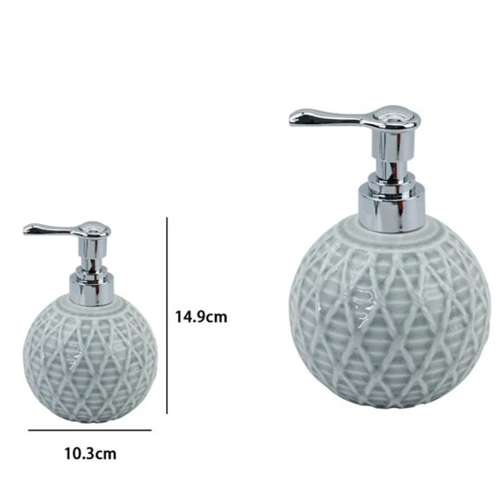 Il Dispenser Sapone Liquido Sfera Grigio Effetto Rete è un accessorio raffinato e funzionale che conferisce un tocco di eleganza al tuo bagno. Realizzato in ceramica di alta qualità, questo portasapone si distingue per il suo design grigio con un affascinante effetto corda di rete. Le dimensioni ben bilanciate di 10.3×10.3×14.9cm lo rendono adatto a qualsiasi tipo di ambiente, donando quel tocco di stile che completa la tua zona bagno.