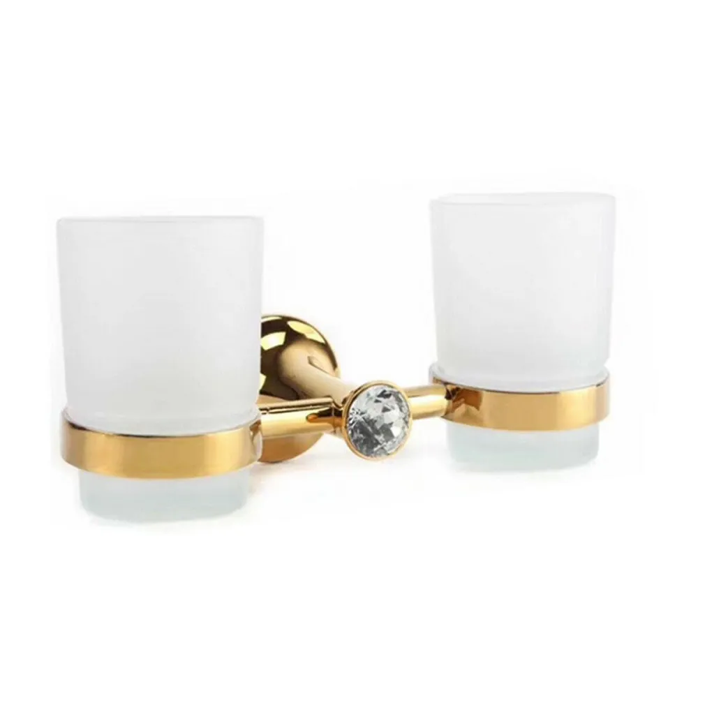 DOPPIO BICCHIERE SUPPORTO BAGNO PORTA SPAZZOLINO DENTI MURO DORATO ORO DGO-106