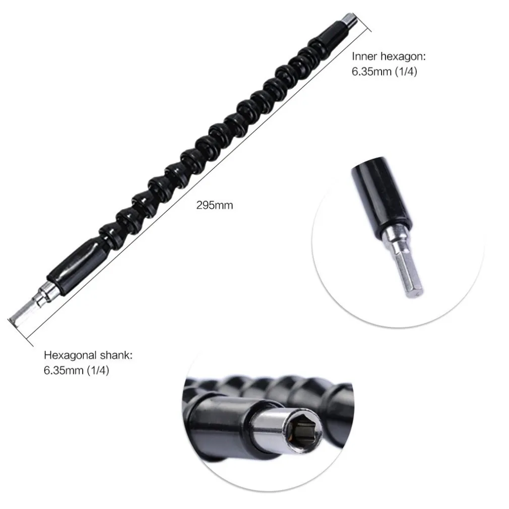 punta da trapano estensibile, raggiunge fino a 12 pollici che rendono possibili quei lavori impossibili, si piega in qualsiasi direzione per entrare in quei luoghi difficili da raggiungere e stretti. Si collega rapidamente e facilmente a trapani elettrici. Perfetto per idraulici, posti di lavoro automobilistico e riparazione a casa.