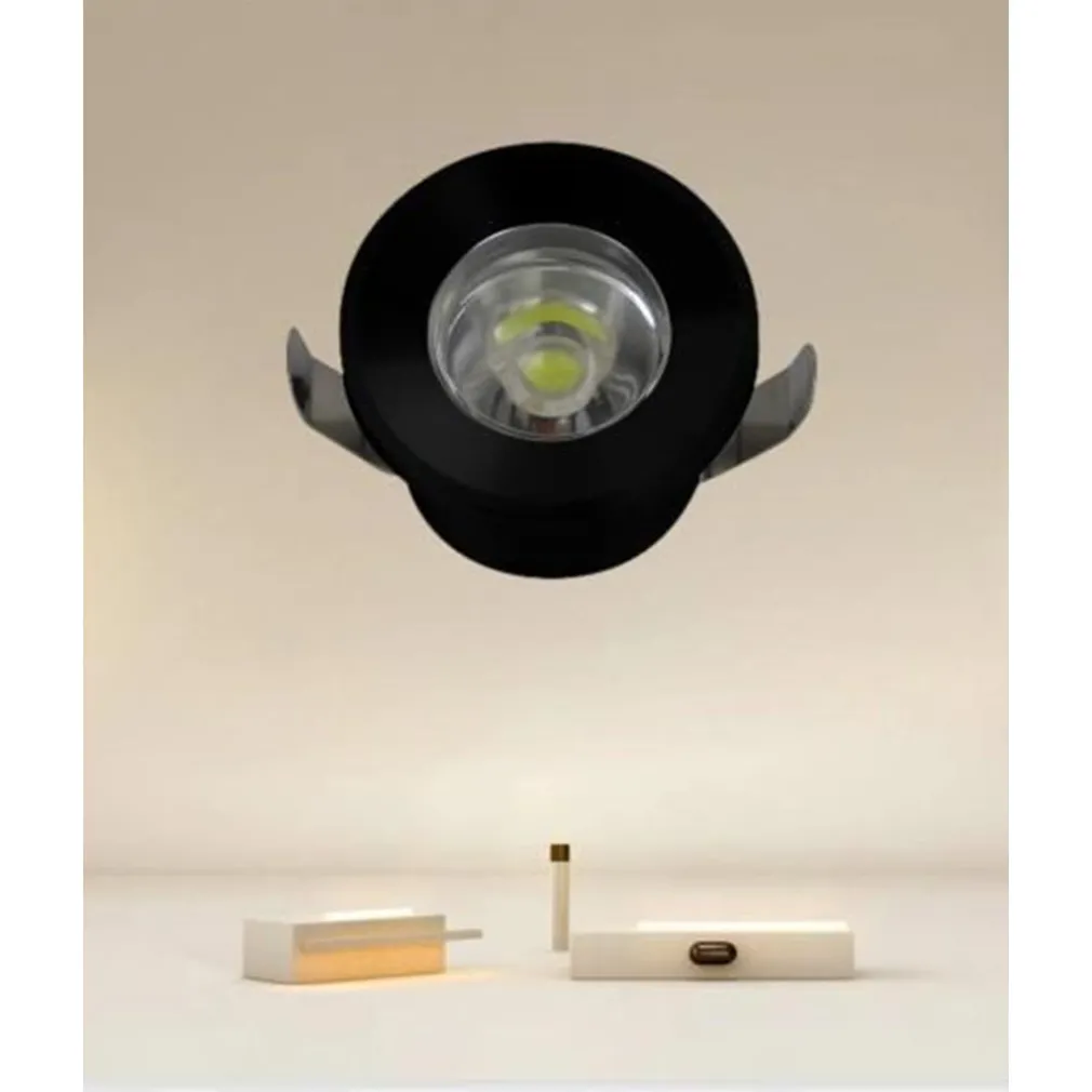 Faretto 1W LED Incasso a Soffitto IP20 Nero Mini Spot Segnapassi Luce Fredda 00281