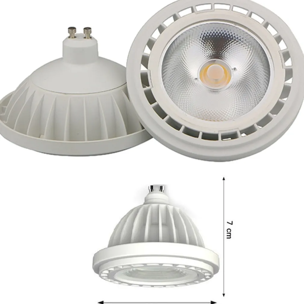 Lampadina AR111 Cob da 20 watt che sostituiscono le tradizionali G53 alogene da 200W.