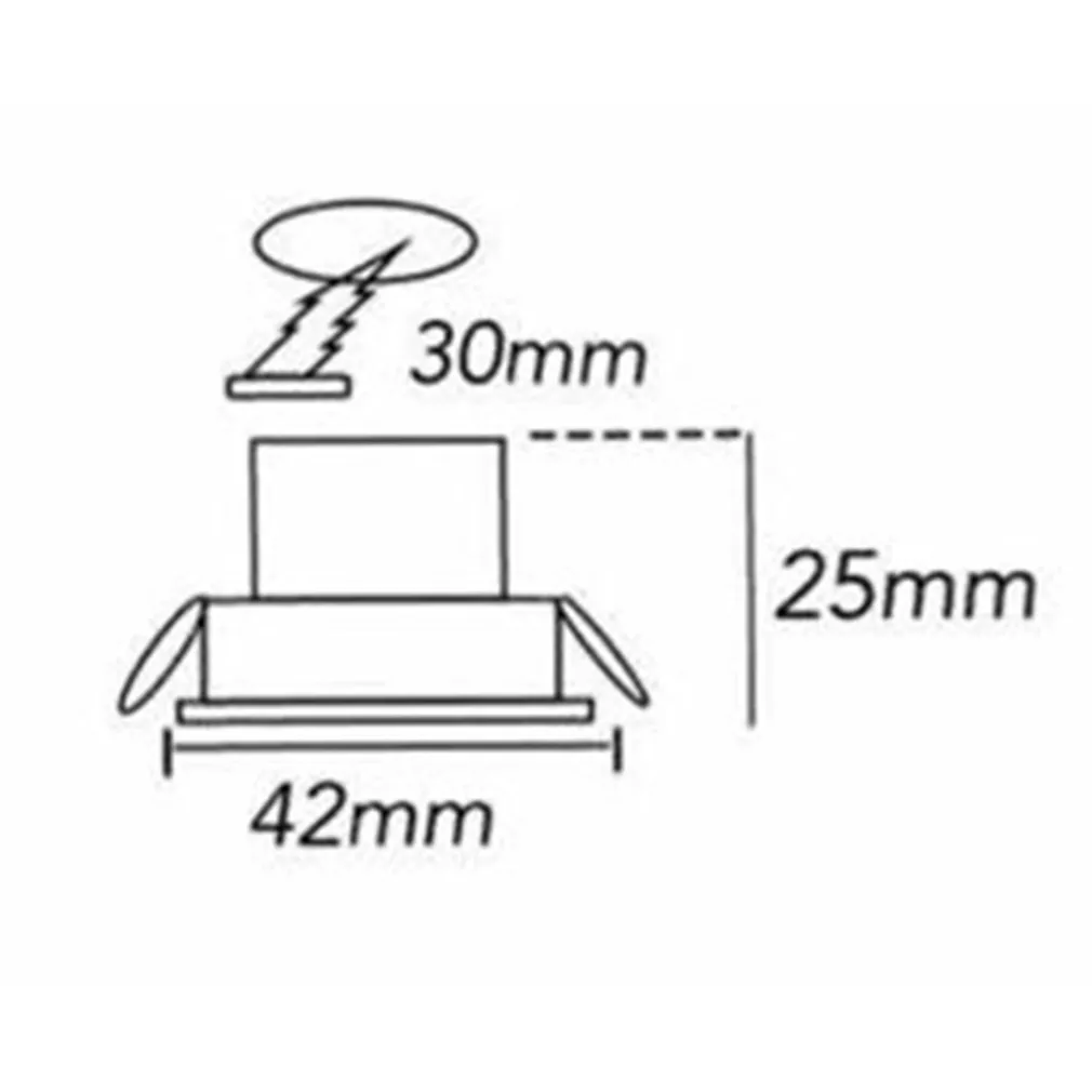Il diametro esterno è di 42 x 25h mm, mentre il diametro interno misura 30 mm, garantendo una facile integrazione in soffitti standard.