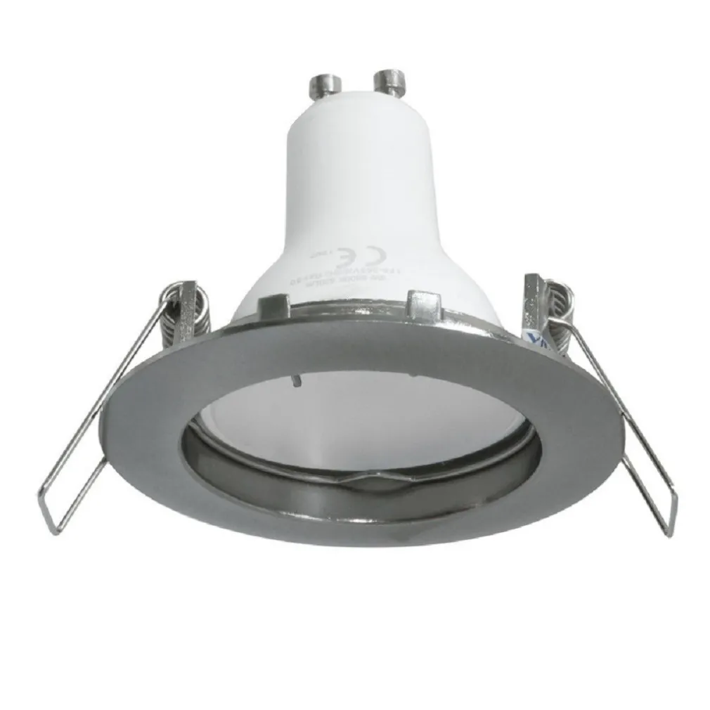 Faretto con alette a molla per l’incasso con cornice rotonda realizzato in alluminio disponibile in 3 colori: bianco, silver e nero. Il portafaretto viene fornito completo di lampada LED 8W con attacco GU10 ideale per l’illuminazione interna in controsoffitti di cartongesso. Lampada intercambiabile, supporta lampade con diametro 50mm.