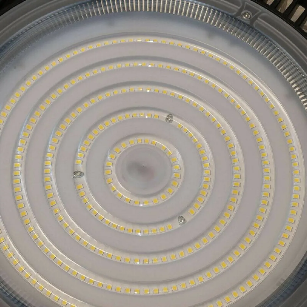 Lampada led industriale forma ufo con catena 200 watt 220V riflettore da capannone a luce bianca fredda 6500k. Lampada led industriale di ultima generazione ad alta luminosità. Ideale per grandi ambienti come capannoni, negozi, centri commerciali, fabbriche ecc.