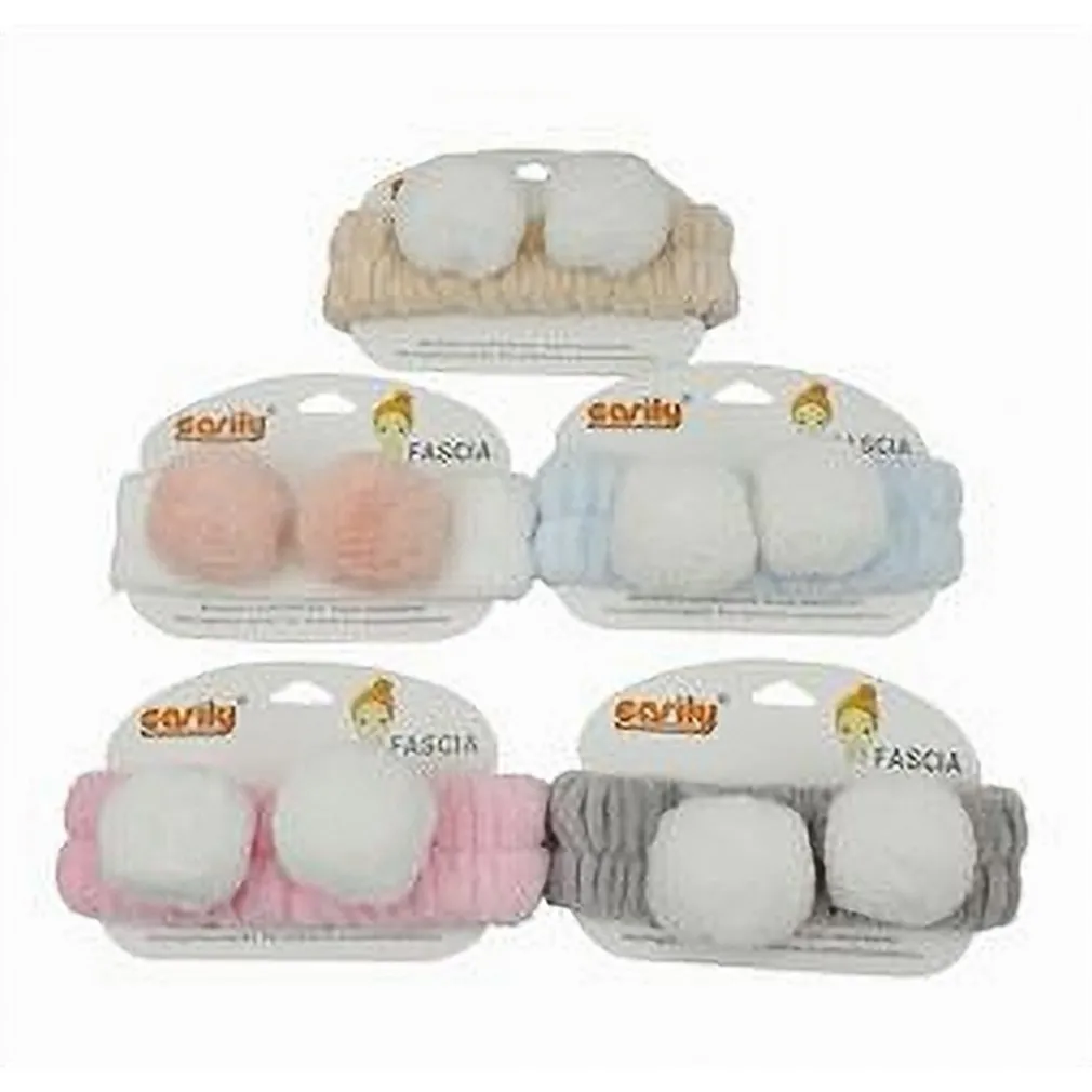 Fascia per Capelli Doccia Shampoo Trucco Spugna Orecchie Pon Pon 5 Colori 79297