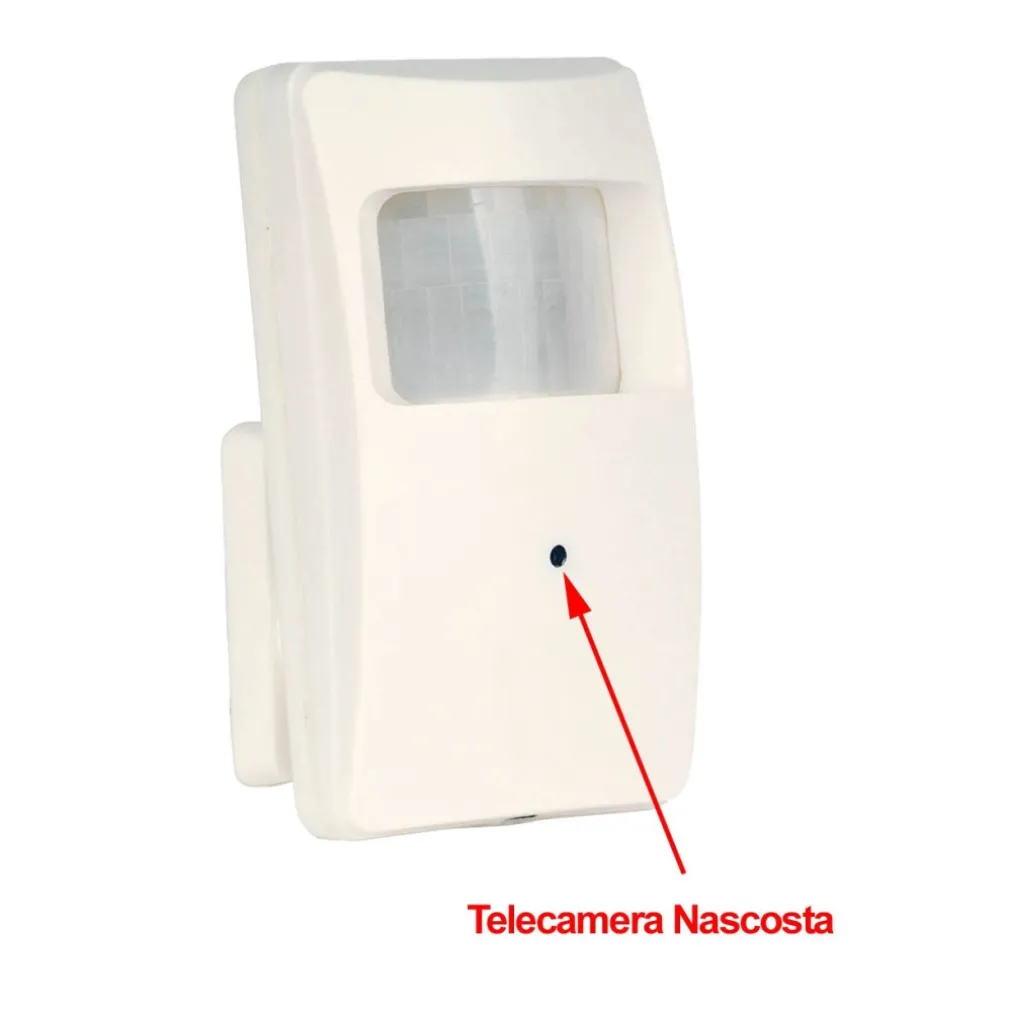 La telecamera è nascosta all’interno di un sensore di movimento per allarmi applicabile a parete. All’interno, del finto rilevatore del tutto identico ad un vero sensore per antiforto è installata una telecamera miniaturizzata a colori del tutto invisibile dall’esterno.