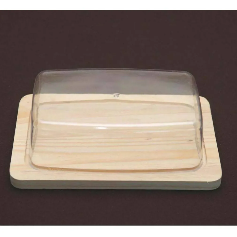 Formaggiera Porta Formaggio Rettangolare Base in Legno e Cupola Copertura