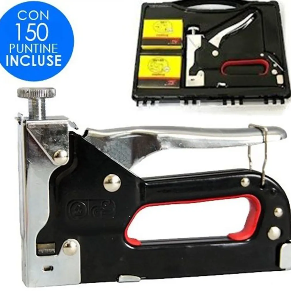 spillatrice, sparapunte graffettatrice munita di vite regolabile che permette di regolare la forza d’impatto idonea al tipo di lavoro che state effettuando, questo la rende uno strumento perfetto per i vostri piccoli lavori di bricolage in quanto è leggera e maneggevole ed è contenuta in una piccola e pratica valigetta che la rende facilmente trasportabile.