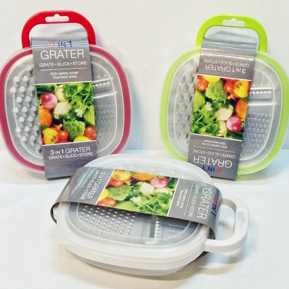 3IN1 GRATTUGIA AFFETTA JULIENNE CON CONTENITORE PER FORMAGGIO VERDURE FRUTTA GRATE SLICE colore casuale