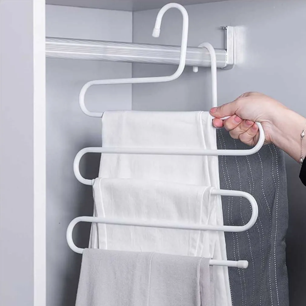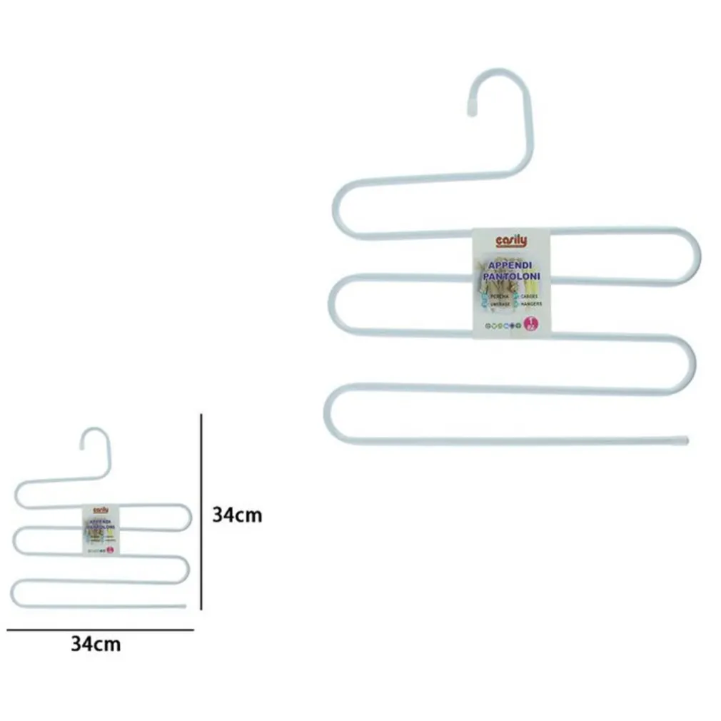 La struttura a forma di “S” multistrato consente di appendere fino a 5 pantaloni, jeans, cravatte o sciarpe su un’unica gruccia, offrendo una soluzione organizzativa salvaspazio perfetta per qualsiasi tipo di armadio. Ideale per chi desidera massimizzare lo spazio e mantenere gli indumenti sempre in ordine.