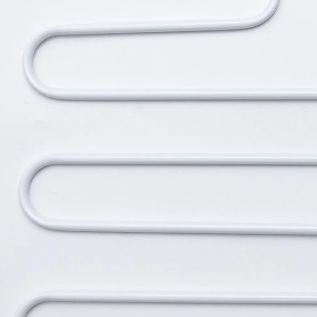 La gruccia appendi pantaloni a forma di S è pensata per ospitare pantaloni, jeans, cravatte, sciarpe, e anche asciugamani o altri indumenti flessibili. Grazie al suo design intelligente, ogni elemento resta ben fissato e ordinato.