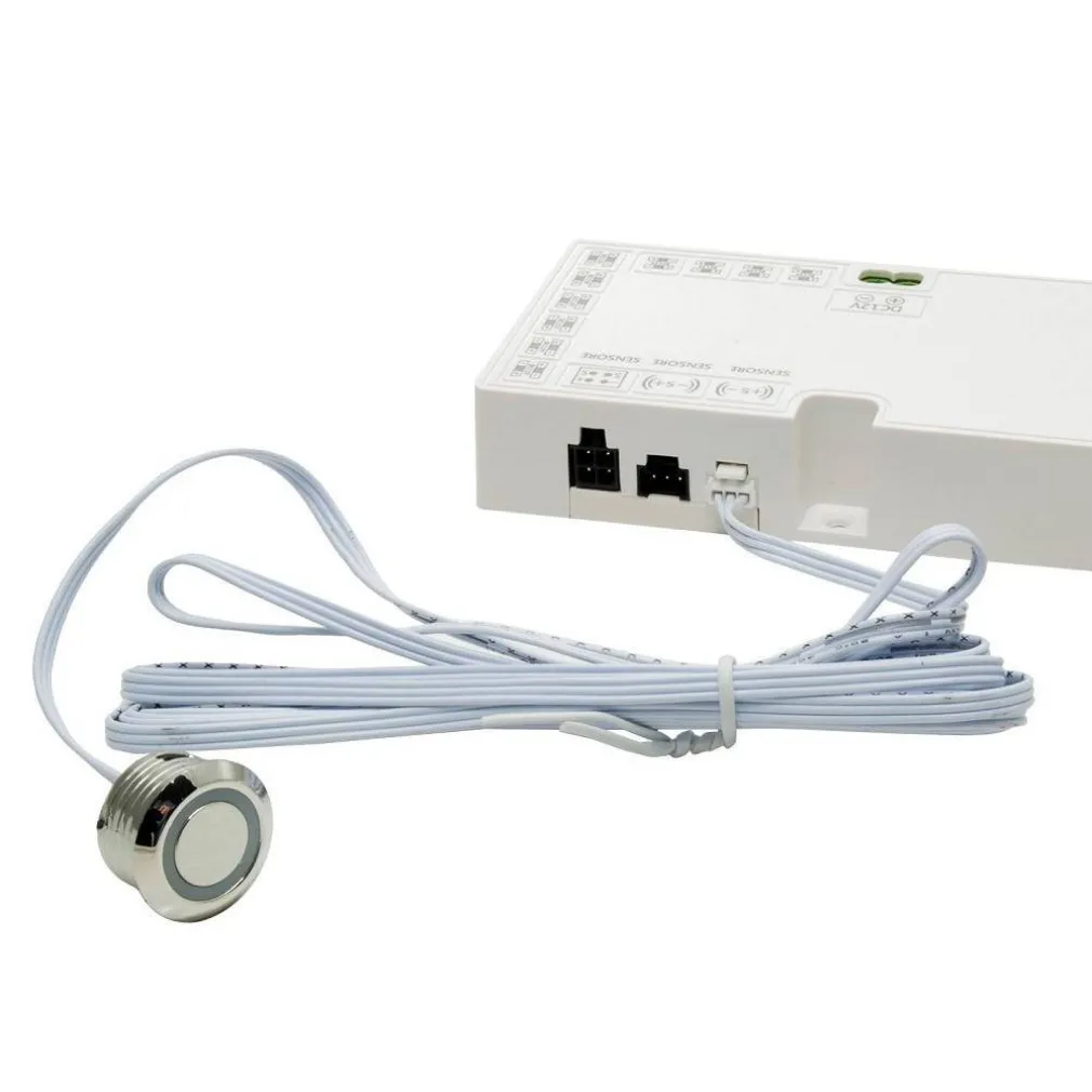 Esteticamente bello si installa facilmente ad incasso in mobili, mensole, ripiani ed è dotato di LED blu che indica il corretto funzionamento. L’interruttore ha un grado di protezione IP20 adatto per uso interno. La centralina è dotata di cavo con lunghezza di circa 2,20 metri per posizionare il sensore dove è più comodo. Potenza massima supportata 60W.