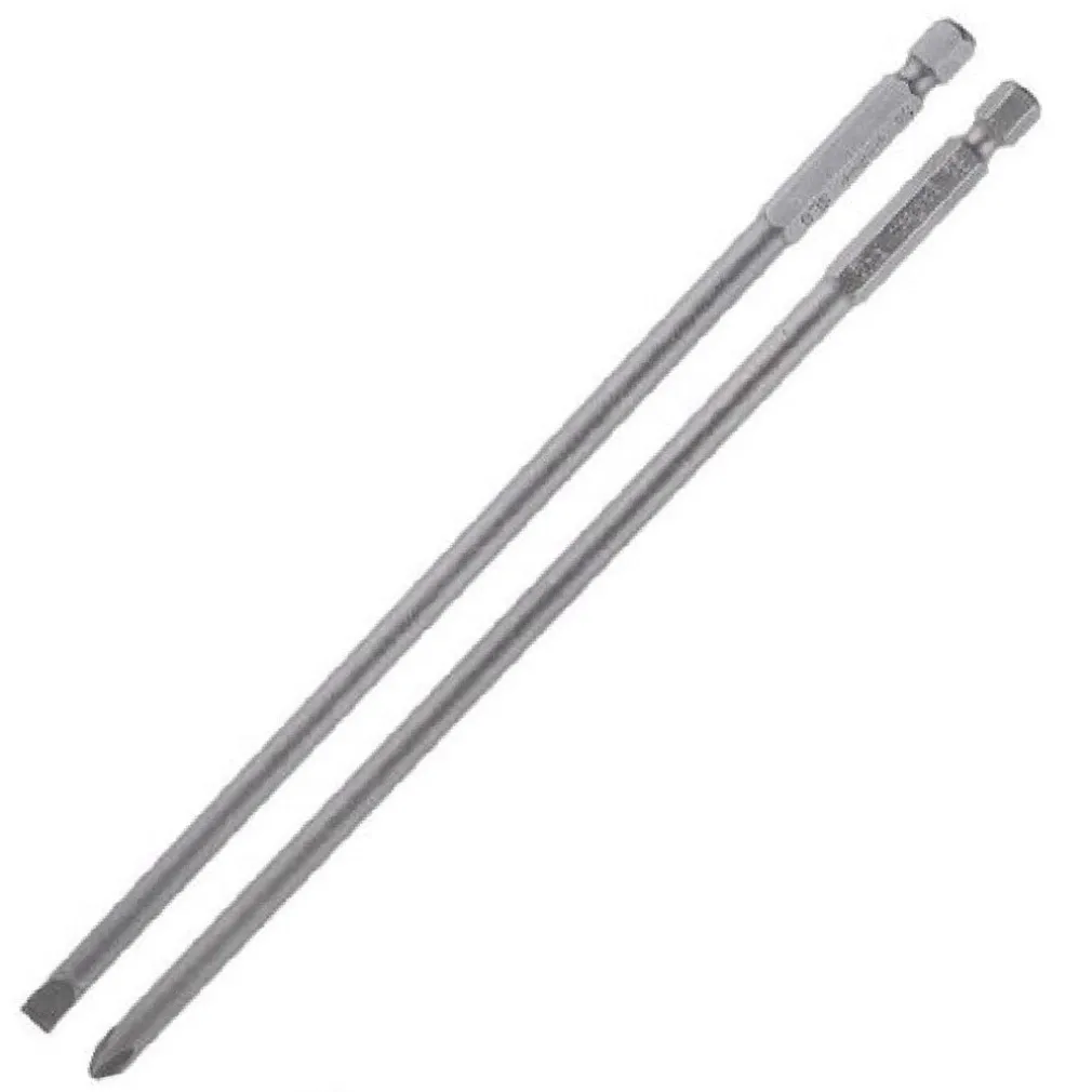 Punte magnetiche s2 inserti ph2 e sl6 da 200mm. Ogni pezzo è munito di una punta all’estremità, una ha la classica punta a croce e l’altra ha la punta a taglio o piatta.
