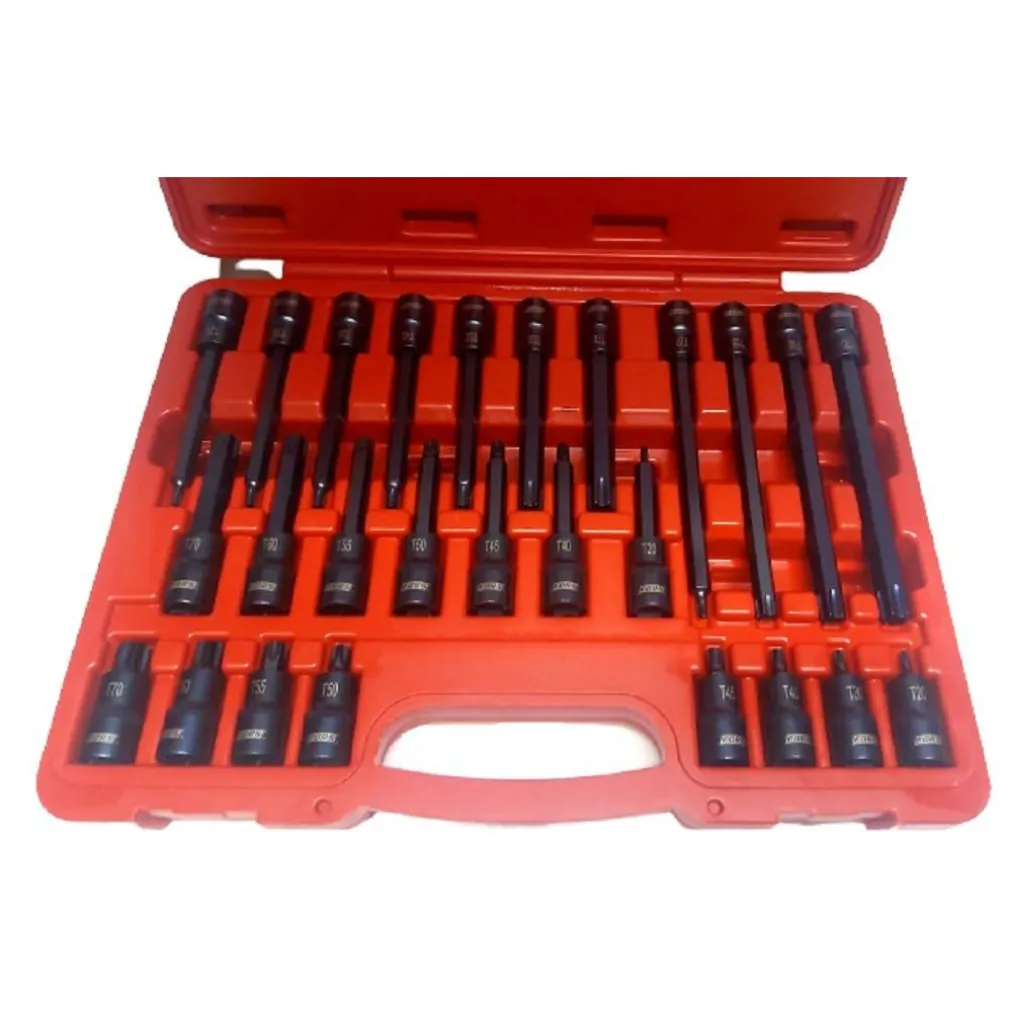 KIT 26 PZ INSERTI INSERTO TORX CHIAVI BUSSOLA 1/2 LUNGHE AUTO MECCANICO FS-43612