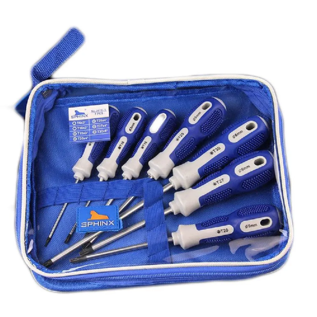 Comodissimo e pratico set di cacciaviti torx (modello a T) ideale sia per campi professionali che per il bricolage e il fai da te. Ottimo set con impugnatura in gomma ed ergnomica, per una presa salda e sicura. Possono essere utilizzati in molteplici campi. In una pratica confezione a sacchetto richiudibile mediante chiusura a zip e cacciaviti all’interno alloggiati in un pratico selezionatore a molla cucito, comoda e pratica sia per riporli in garage o in casa in una zona dedicata agli attrezzi di manutenzione o anche per essere facilmente trasportati.