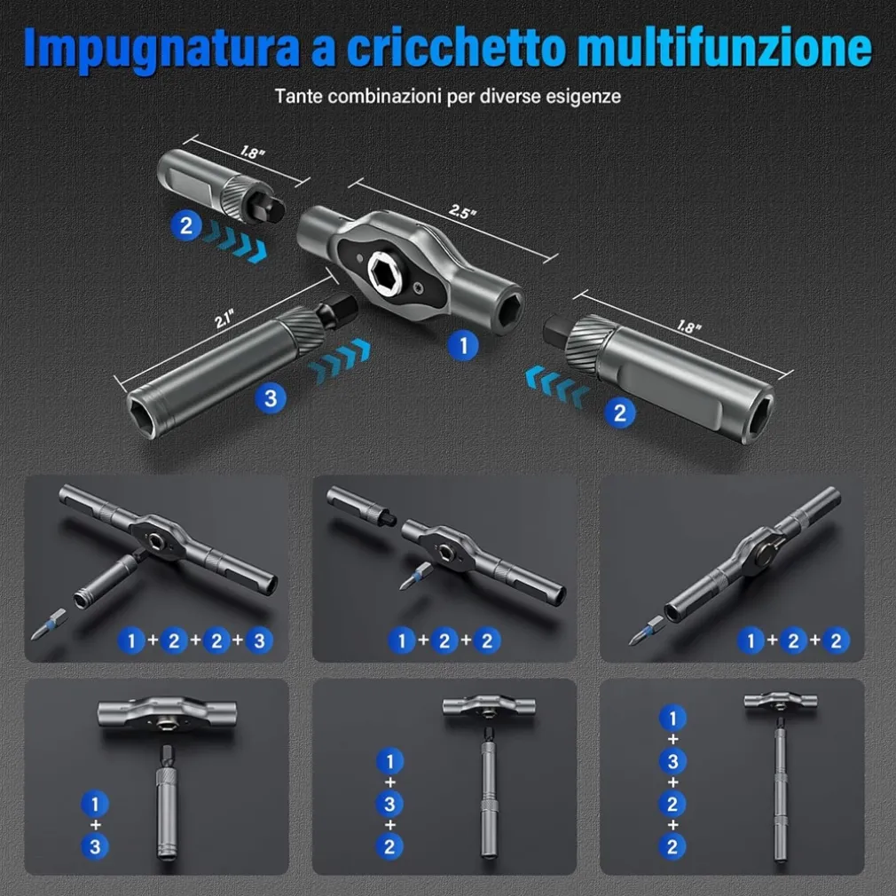 - 1 Cacciavite a cricchetto con impugnatura a T