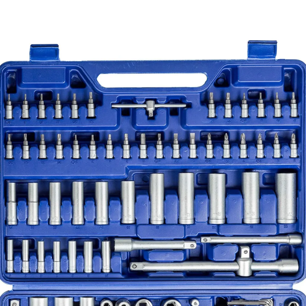 Kit composto da 3 cricchetti 1/2″ – 3/8″ – 1/4″, un adattatore/cacciavite porta inserti e barre a T scorrevoli corredate da centinaia di inserti e bussole dalle molteplici impronte. Bussole lunghe, corte, inserti torx, esagonali, ribe di qualsiasi dimensione. Una piccola officina portatile da avere in casa o a lavoro per affrontare qualsiasi evenienza. Tutti gli attrezzi inclusi in questa offerta sono forgiati in resistente cromo vanadio e riposti in una comoda valigetta in plastica rigida.