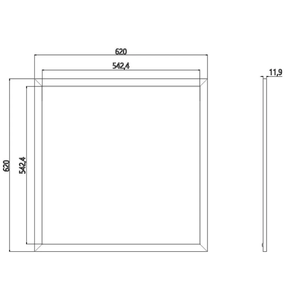 - Dimensioni del pannello: 620mm x 620mm x 11mm