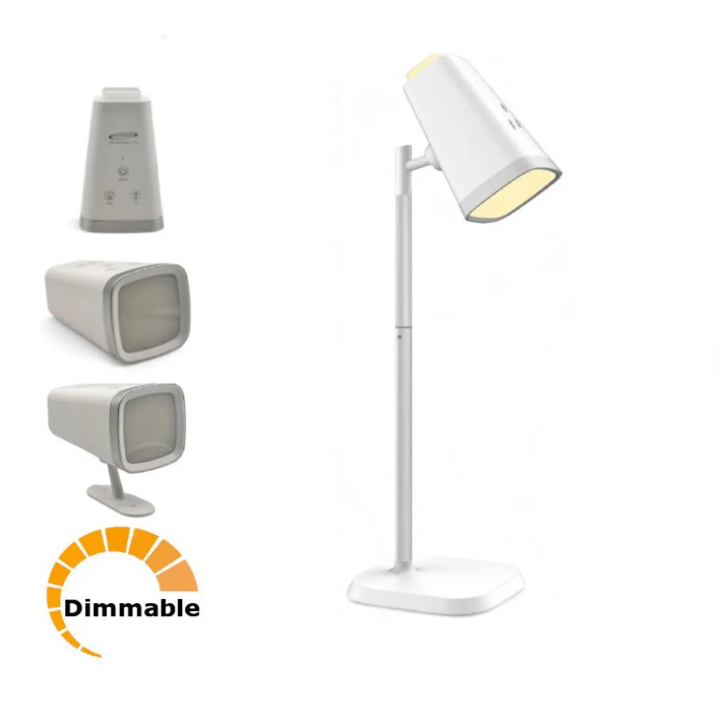 È una lampada LED 2 in 1 ricaricabile, utilizzabile sia come lampada da scrivania che come applique a parete, con luce dimmerabile e tripla colorazione.