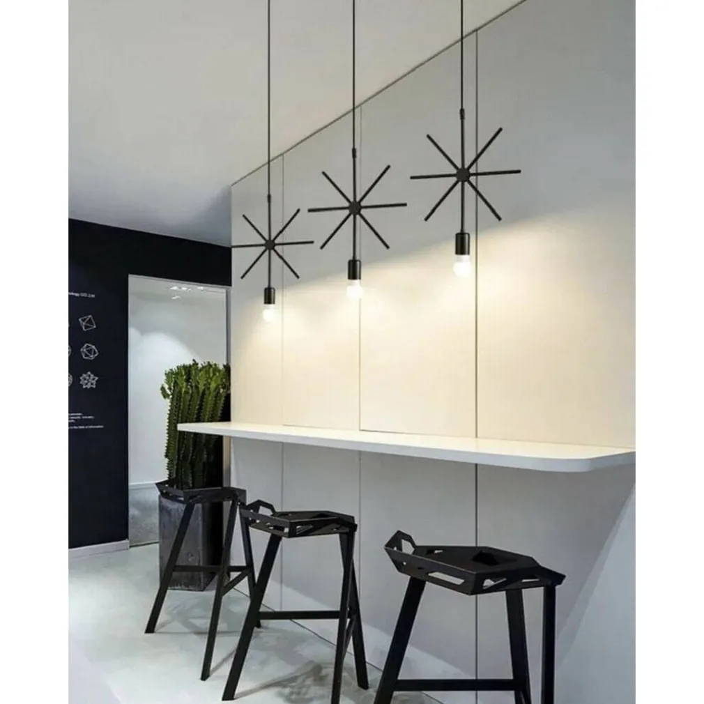 Moderno portalampada a sospensione con attacco per lampadine E27 dal design moderno riproduce l’effetto di una stella. Grazie al suo design si adatterà perfettamente ad ogni arredamento.
