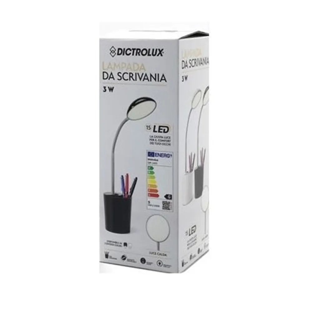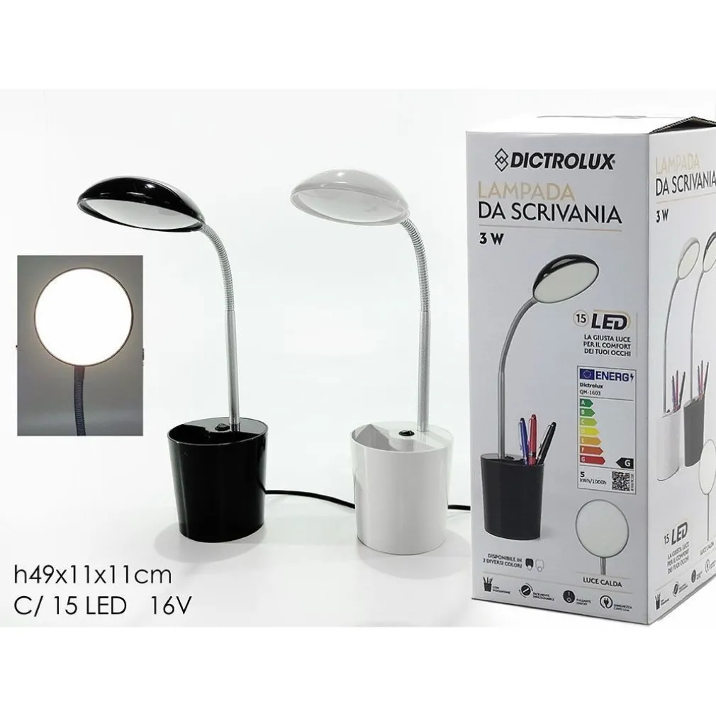 Lampada da tavolo scrivania con portapenne 3 watt 15 LED 16V a luce calda in 2 colori