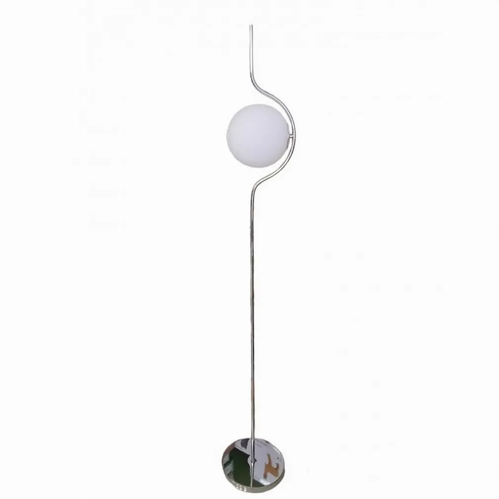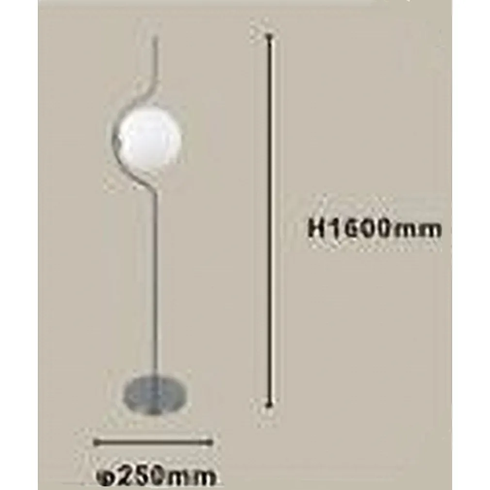 - 1 Lampada da terra con struttura in metallo argentato e sfera in vetro bianco opaco.