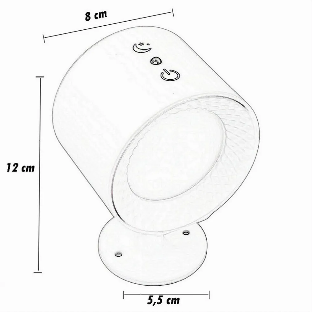LAMPADA PARETE LED LUCE FRONTE RETRO RICARICA USB 3 COLORI LUCE ORIENTABILE BD01-3C