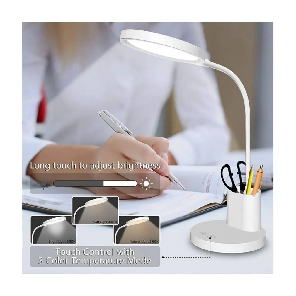 Lampada da tavolo con controllo tattile dimmerabile con 3 modalità di temperatura del colore, luce naturale 3500K, luce soffusa 4000K e luce intensa 6500K, nessuno sfarfallio, nessuna area scura, protegge gli occhi dall’affaticamento. Tocco lungo per il controllo, entra in modalità di luminosità infinita. Puoi scegliere la tua luminosità preferita.