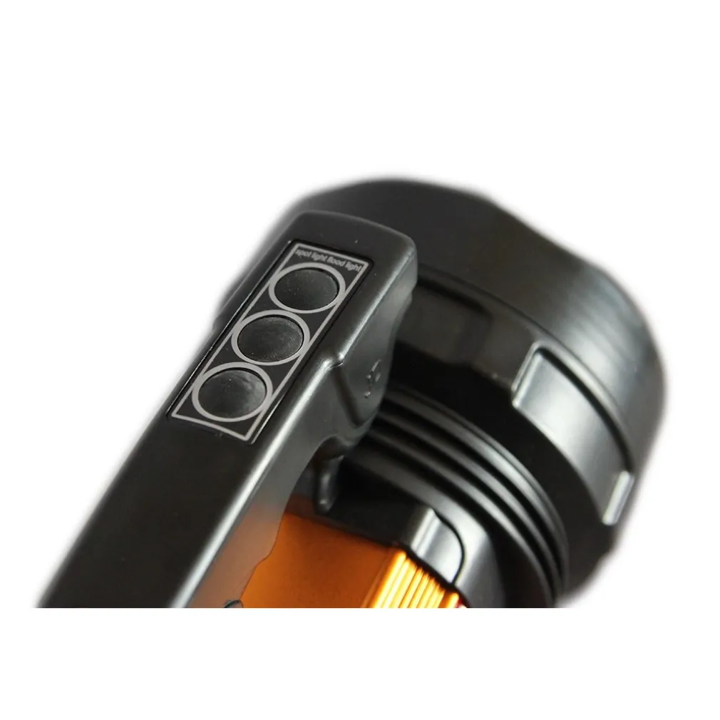 Torcia Ricaricabile professionale lampada parte frontale con un potente CREE LED con una potenza complessiva di 10W, distanza di lavoro oltre 500m, di colorazione bianca , un pannello laterale composto da 18 led smd a luce bianca e l’altro di colorazione rossa per utilizzarla in qualsiasi occasione e per qualsiasi tipo di necessità.