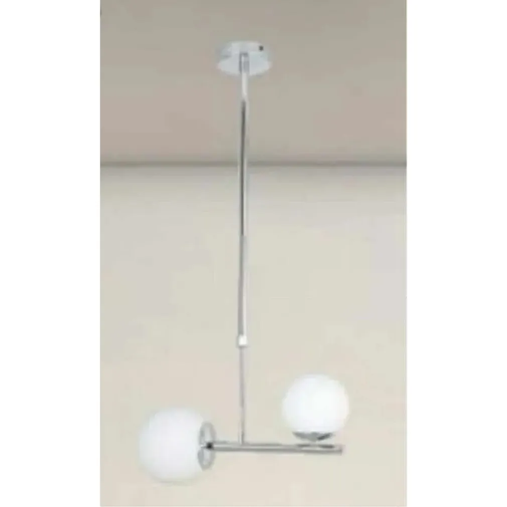 Scopri il Lampadario a Sospensione Argento con 2 Sfere in Vetro Bianco Attacco G9 E27 33498