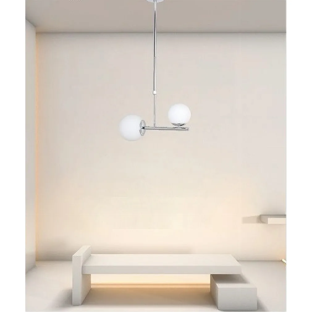 Perché scegliere il Lampadario a Sospensione Argento con 2 Sfere in Vetro Bianco?