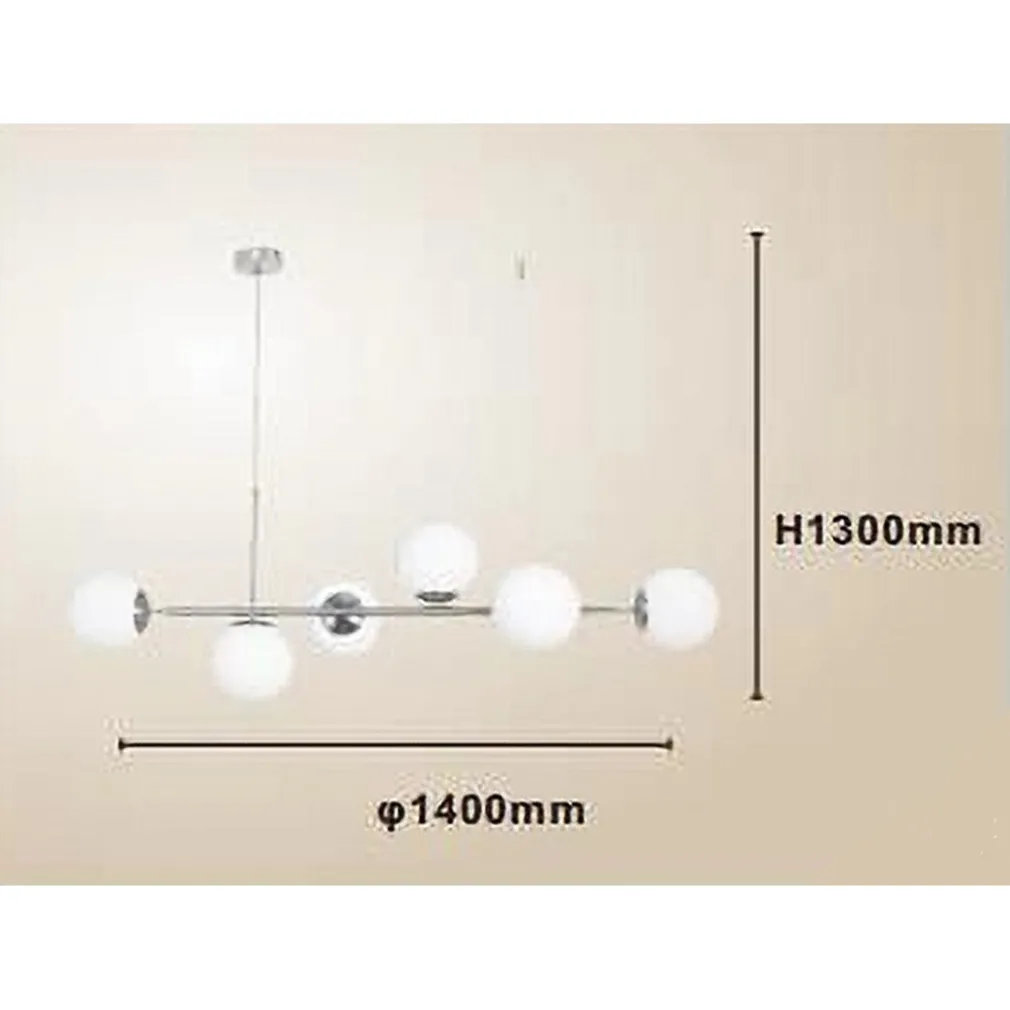 - La confezione include il lampadario a sospensione con 6 sfere in vetro bianco opaco, attacco G9 (lampadina non inclusa), cavi a sospensione regolabili e istruzioni di montaggio.