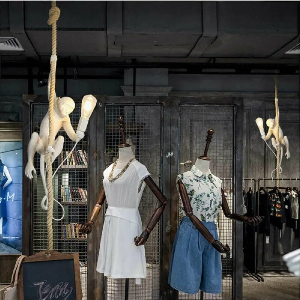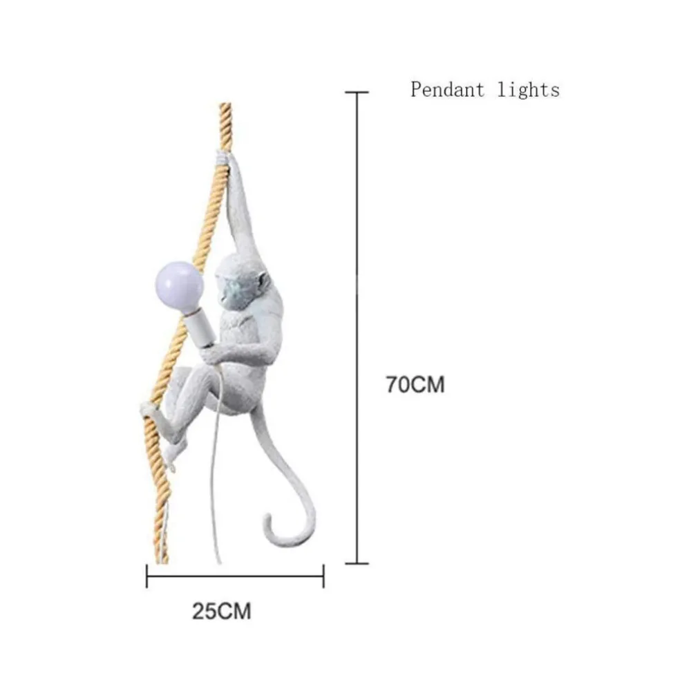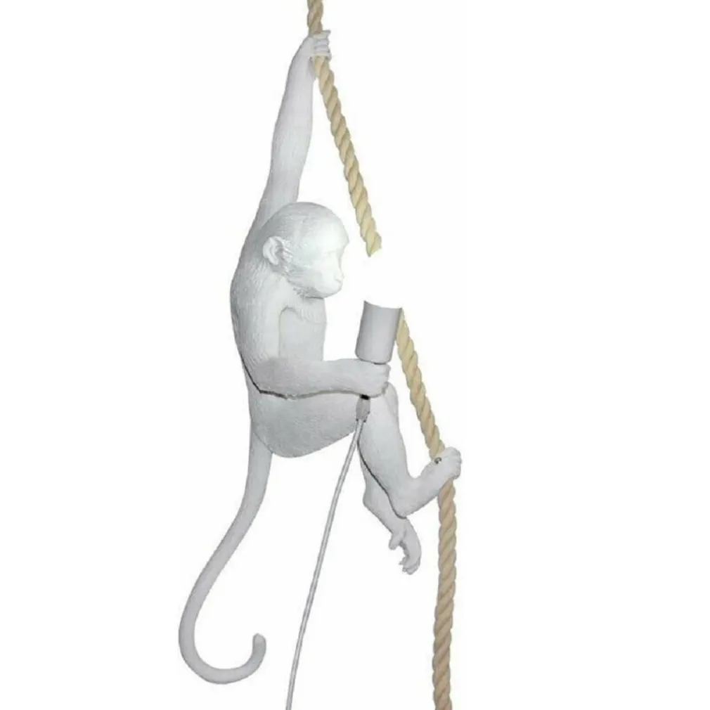 Lampadario a sospensione dal design moderno a forma di scimmia con corda in canapa. Ideale per dare un tocco di originalità alla casa.