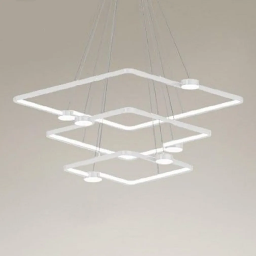 Trasforma ogni ambiente della tua casa con il lampadario a sospensione LED 112W con 3 quadrati, un mix perfetto di design moderno e funzionalità avanzata.