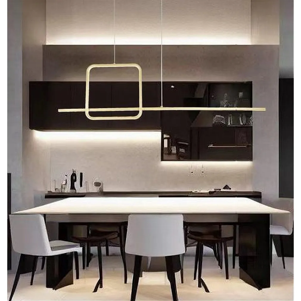 Lampadario a Sospensione LED 48W Design Quadrato Linea Oro IP20 Cucina Luce Fredda 6500K