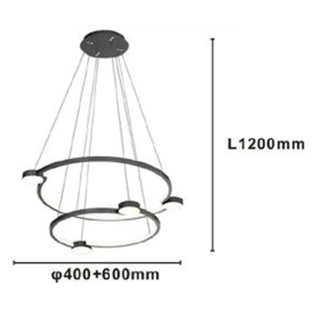 - 1 Lampadario a sospensione LED 60W con design a 2 cerchi.