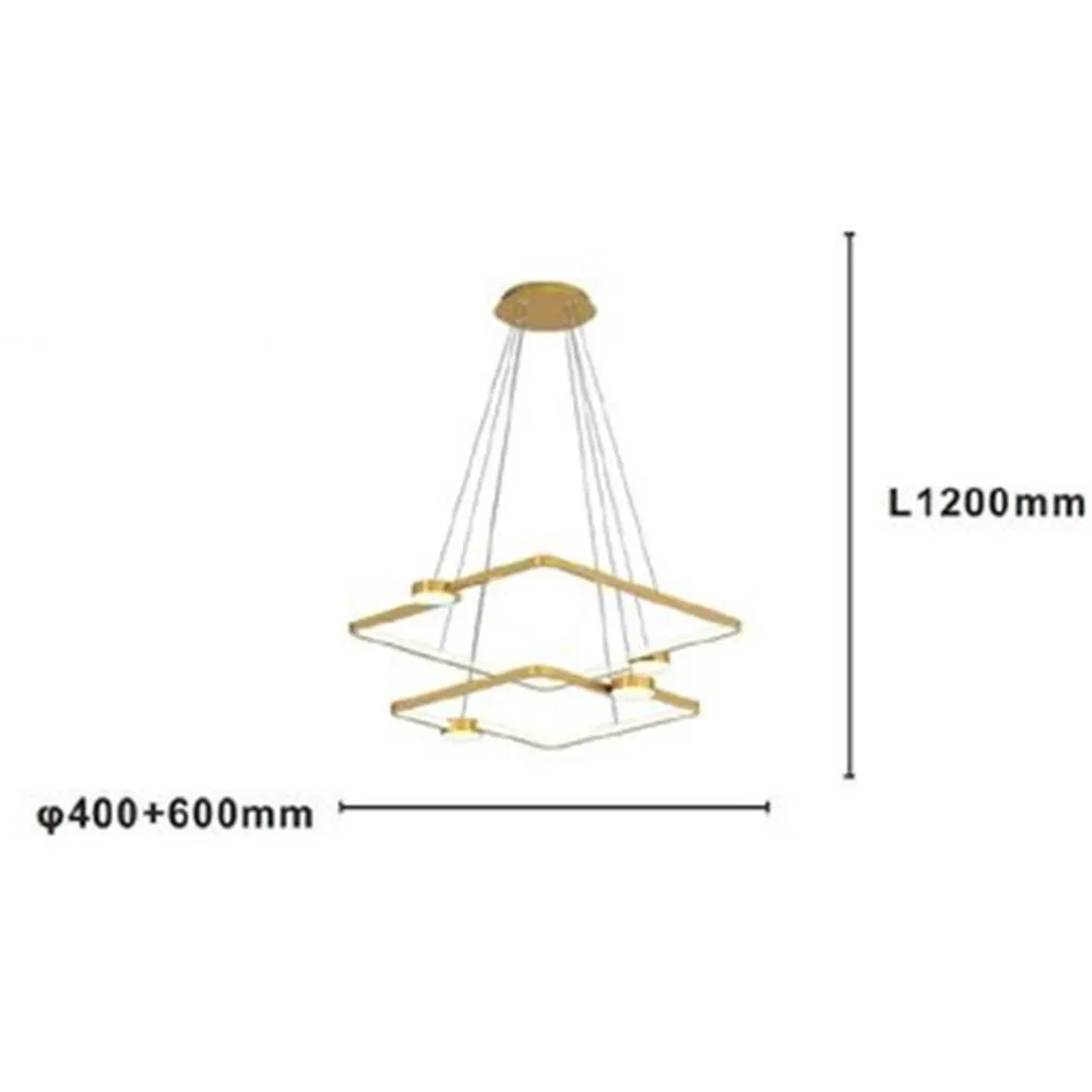 Lampadario a Sospensione LED 60W 2 Quadrati con Telecomando – Design Moderno Oro 71200